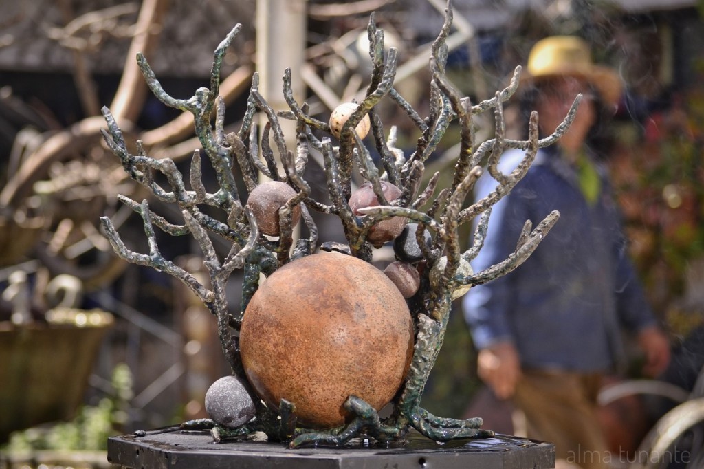 A principios de siglo, en un mes que no era febrero, paseaba por la ciudad con un amigo con el que nos entregamos despreocupados a curiosear callejas y avenidas, saludando los pocos árboles que nos salían al paso y aterrizando indefectiblemente en uno de esos restaurantes de comida sencilla, pero sabrosa, para luego retomar el vagabundeo. Nos sacamos una foto en una plaza, al lado de una escultura, giramos una calle, otra, hasta que, de improviso, dimos con una reja excepcional. Tenía vidrios empotrados y piedras de diferentes formas y colores que hicieron sonreír a nuestros ojos. Nos acercamos atraídos para descubrir que daba paso a un amplio patio que albergaba diferentes objetos, inútiles y bellos, creados en bronce, hierro forjado o granito. Pero sobre todo piedras y más piedras curvadas y coloridas, algunas colgantes, otras en hilera sobre los alfeizares y salientes de la pared, en las tejas y por el suelo, dispuestas entre el caos y la belleza buscada.