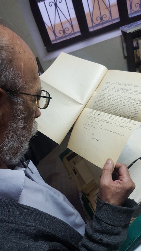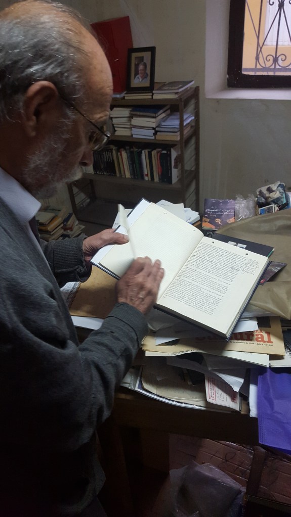 Al regreso del café, mientras el maestro mete en un sobre unos documentos que me encomienda para La Paz, pausado en la computadora de la sala de su casa, está el disco de Enrique Morente en homenaje a Lorca. La música no falta casi nunca en sus días o sus noches, entre libros, Kindle, o un partido de fútbol de cualquier liga.