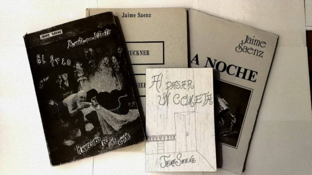 Desde 1955 hasta 1973, Jaime Saenz es solo poeta; después empieza su publicación narrativa, con sus Imágenes paceñas (1979) y la novela Felipe Delgado (1979) como cumbre; luego, hasta su muerte, alterna los dos géneros. Él decía que desde siempre había trabajado en ambos terrenos, pero que las respectivas apariciones se debían simplemente a las posibilidades de publicación. En efecto, por ejemplo, su novela Los papeles Narciso Lima-Achá, editada póstumamente en 1991, estaba prácticamente acabada antes de 1975, en la época de su mayor publicación poética –se titulaba provisionalmente La identidad. Luego de la compilación de su Obra poética (1975) aparece Imágenes paceñas (1979), poco antes de Felipe Delgado.
