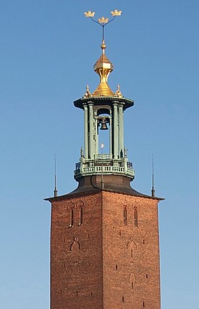 A principios de mes se respira un aire especial en Estocolmo, y todo el mundo tiene los ojos clavados en la capital sueca. Así, por ejemplo, el 10 de diciembre de cada año, es el Día Nobel. Es decir, el día en que el rey Carlos Gustavo de Suecia entrega los galardones que llevan el nombre del inventor de la dinamita: Alfred Nobel. Ese mismo día tiene lugar el Banquete Nobel en la Sala Azul del ayuntamiento de Estocolmo, un gran recinto que fue diseñado por el famoso arquitecto Ragnar Östberg. Esta majestuosa obra arquitectónica empezó a construirse, en 1911, en el lugar que una vez quedó en escombros después de que un molino a fuego se incendió en la segunda mitad del siglo XVIII. Y se inauguró, con bombo y platillo, como un símbolo de la Madre Svea en la víspera del solsticio de verano (midsommar), el 23 de junio de 1923. Su bella imagen, con su torre de 106 metros de altura en donde se lucen tres coronas doradas, se levanta a las orillas del lago Mälaren en el barrio residencial de Kungsholm. Detrás de su fachada, edificada con ocho millones de ladrillos, se albergan oficinas, salas de fiesta, un restaurante, salas de conferencia y otros cuartos adicionales. Parte del ayuntamiento está abierta al público de lunes a viernes. La visita dura 45 minutos y junto a un guía uno puede observar diferentes compartimentos, como por ejemplo una pequeña Sala Nupcial donde se casan las parejas por lo civil, la Sala del Consejo donde se llevan a cabo reuniones políticas, la Sala Azul, el Salón Dorado y la Galería del Príncipe adornada con cuadros, espejos y pilares que representan al hombre y a la mujer como pareja.