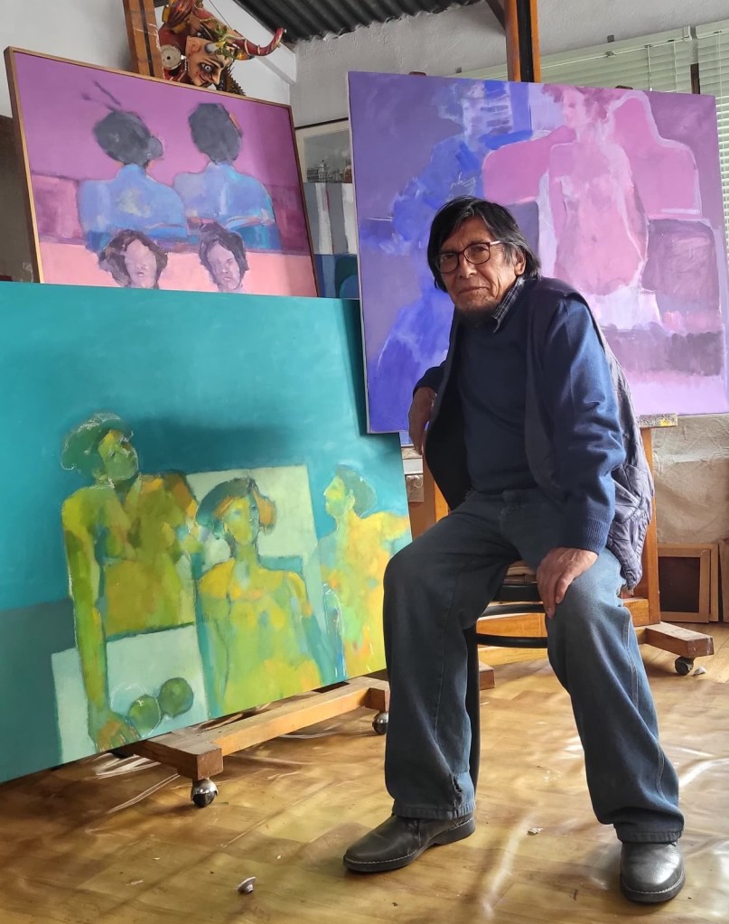 El maestro Erasmo Zarzuela posa ante sus obras.