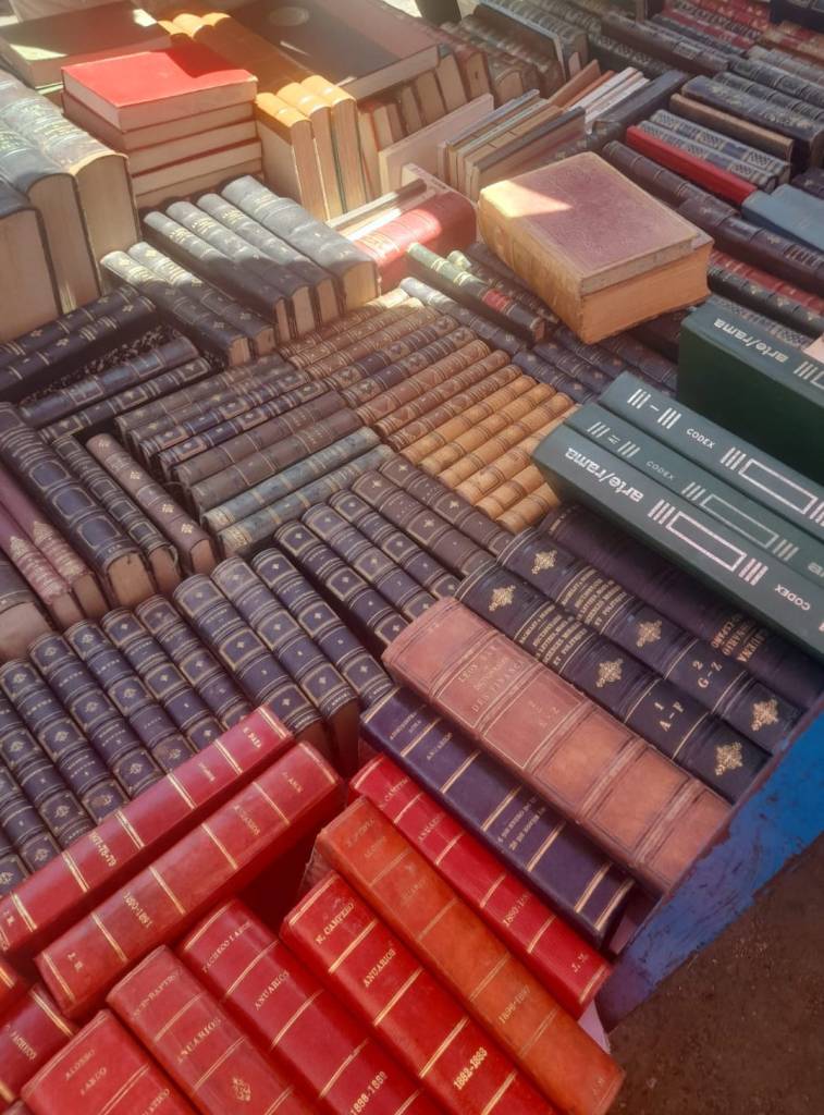 En el trayecto que realizaba hace algunos meses, un domingo de feria, caminando por esa ruta, me detuve al ver varios libros encuadernados de diferentes colores, tamaños y estilos. Me llamó la atención que estén apilados uno sobre otro, como si fueran bloques de ladrillos y otros amontonados en el suelo por la falta de espacio. Llamar mi atención fue poco. Estaba emocionado de encontrar estos libros empastados y forrados, algunos, con cuero de oveja, que datan del siglo XVII o XVIII.