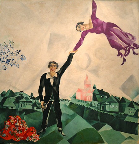 Hay un tema recurrente en la obra de Chagall, la relación del amor con el acto de volar. Gran parte de su obra está plagada de seres que vuelan, flotan, levitan. Oliverio Girondo, lo tenía también: