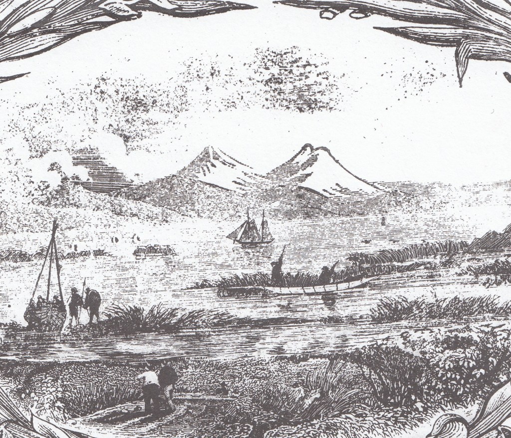 A las cinco de la mañana me embarqué en el bote, a fin de explorar aquel lugar, y encontré que existía un canal en medio de los totorales, cuya profundidad era de vara y media de agua, y creí por esto que me hubiera hallado en el río, e incontinenti me hice a la vela con viento muy variable; después de haber caminado como media legua, disminuyó considerablemente el agua, pues su profundidad no era ya más que de unas once pulgadas: marché a botador con rumbo opuesto al que había tomado más antes, y después que anduve cerca de media legua, tuve que anclar, porque el viento S. S. O. soplaba con mucha fuerza.