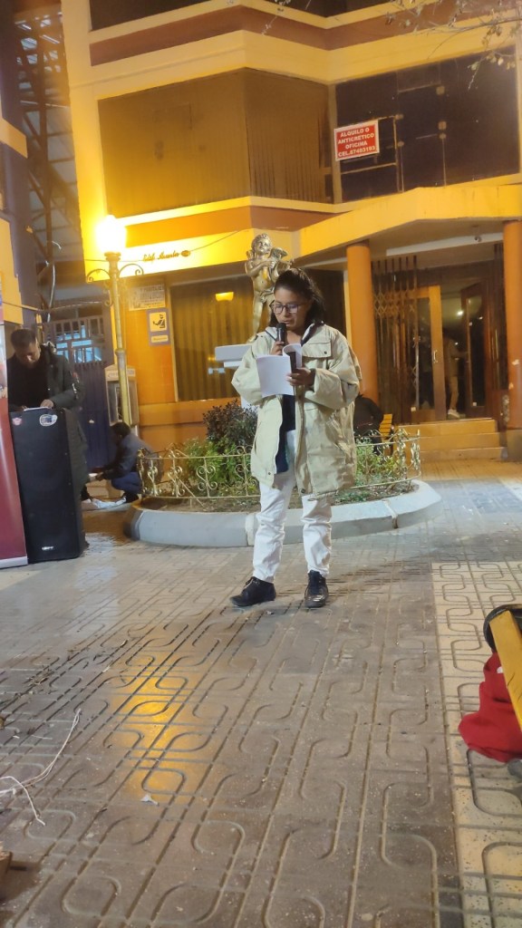 Valentina Gonzales-Aramayo, hace algunos años, fue finalista en un concurso de poesía llamado por el municipio, en el marco del Festival Internacional de Poesía de Oruro. También es parte integrante del Colectivo Urus Delirium, con quienes además se desenvuelve en teatro. En 2024 participó en el encuentro de mujeres poetas organizado por Virginia Ayllón, donde asistió la poeta Verónica Laura. A partir de ese momento la poesía fue una estrella en medio de la nebulosa bruma de la pampa orureña que no le estaba dejando navegar con soltura. Esta presentacion fue un aliento hacia su publicación que vino a llamarse De lo crudo y el caos, de ahí extractamos: