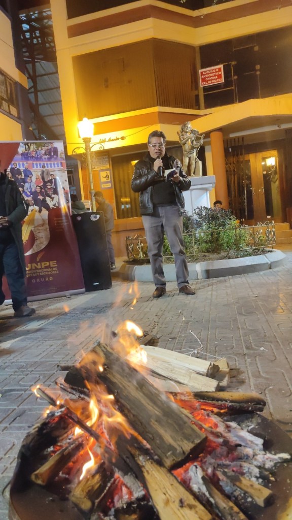 En la víspera del solsticio de invierno de este año pude visitar Oruro para la celebración de la Noche de Arawikus. Este evento es una rememoración de los encuentros de poesía que se realizaban a la cabeza de Alberto Guerra Gutiérrez en los ochentas y noventas, bajo el rótulo de 15 poetas de Bolivia, aunque a veces eran más, o menos.