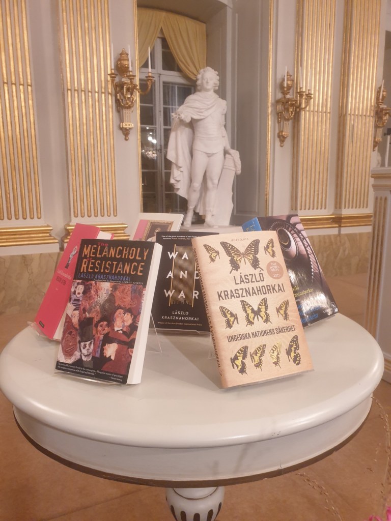 Krasznahorkai terminó su discurso y recibió un ramo de flores por parte de Mats Malm. De pronto, se esfumó del lugar como un suspiro en el viento, sin dejar espacio para preguntas ni para el clic de una cámara.