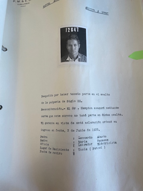 Sería interesante lograr que algún familiar identifique a su abuelo o bisabuelo en estas fotografías seleccionadas en las hojas encontradas en el Archivo de la Patiño Mines en Catavi.